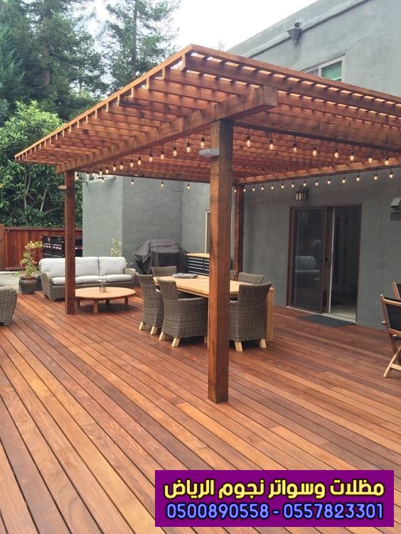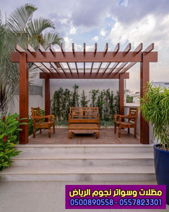 - البرجولات الخشبية: تعد البرجولات الخشبية خيارًا شائعًا لأنها متينة وجميلة. يمكن أن تكون مصنوعة من أنواع مختلفة من الخشب، مثل الخشب الأحمر أو خشب الساج أو خشب الجوز.