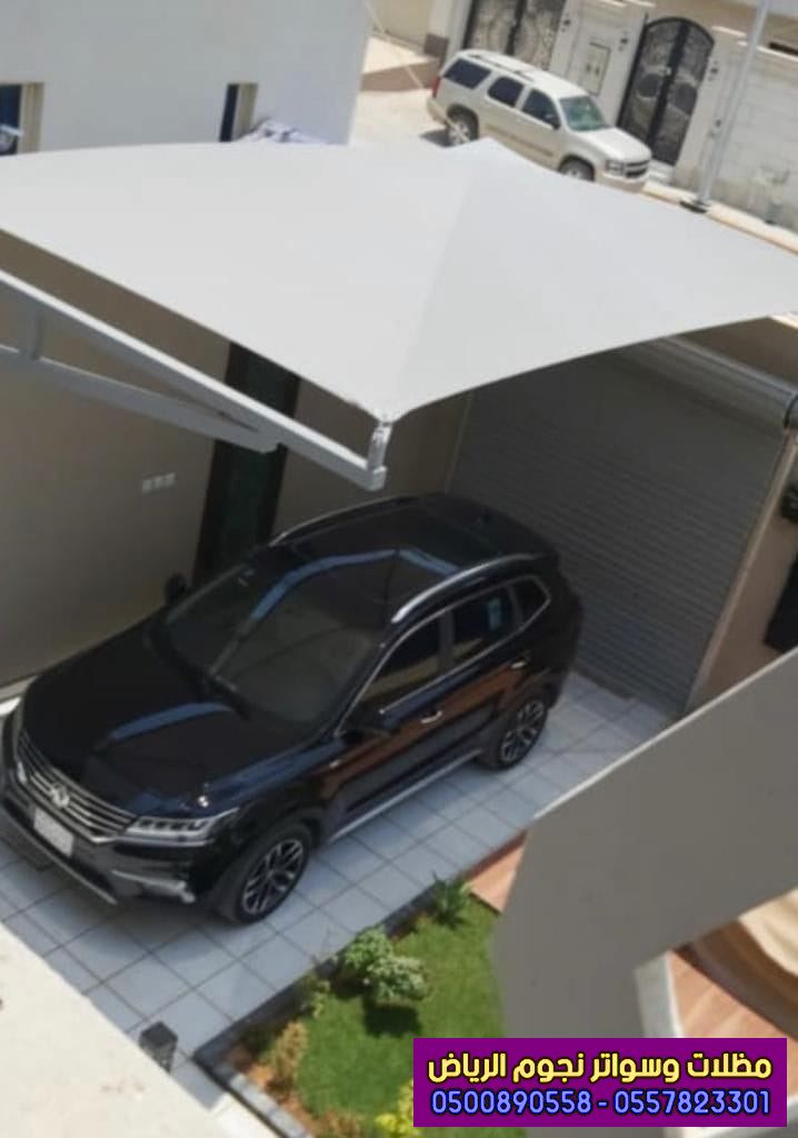 2. مظلات السيارات المتحركة: يمكن فتحها وإغلاقها حسب الحاجة، وتعمل بنظام كهربائي أو يدوي.