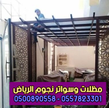 مظلات وسواتر نجوم الرياض تقدم خدماتها في تركيب جميع انواع المظلات والسواتر في جميع احياء الرياض , كمها حي ظهره البديعه وحي لبن لدينا افضل الخامات والاشكال والتصاميم الجديده, من مظلات السيارات ومظلات الحدائق الحديد والخشب وبرجولات الجلسات الخارجية , افضل اسعار المظلات تجدونها لدي مظلات نجوم الرياض.وسوف نعرض لكم باالصور بعض اعمالنا .