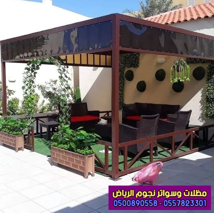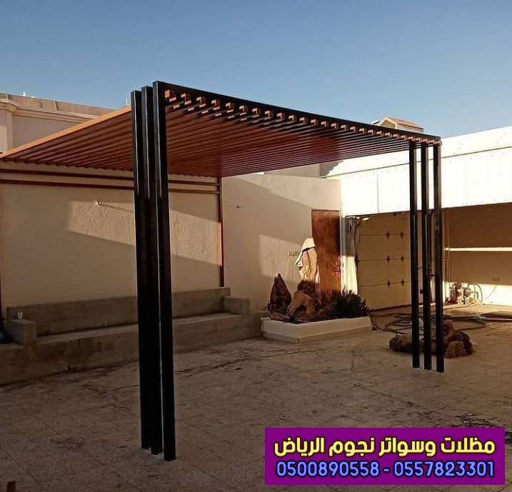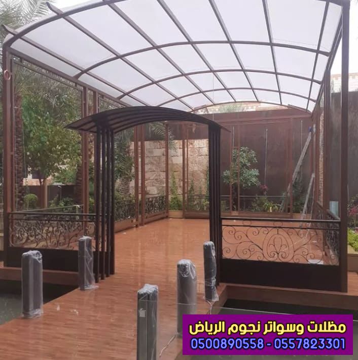 - نوع مميز من أنواع مظلات حديد مصنوعة من هيكل معدني من الفولاذ ، ويتميز بالسماكة العالية بجميع الأحجام والأشكال المميزة ، بإضافة إلى الألوان الجميلة التي تضيف الشكل العصري والأنيق للمنزل ، وخصوصاً اللون البني الداكن الذي يعطي الشكل والطابع الخشبي للمكان . .