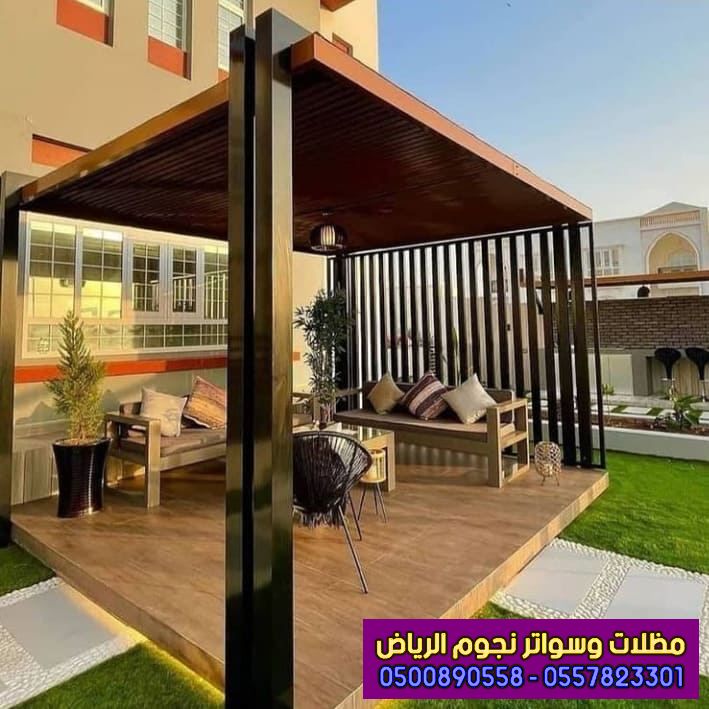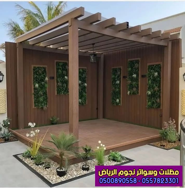 - ومنها مظلات الخشب البلاستيكي المعالج ، ومظلات الخشب الطبيعي السويدي .