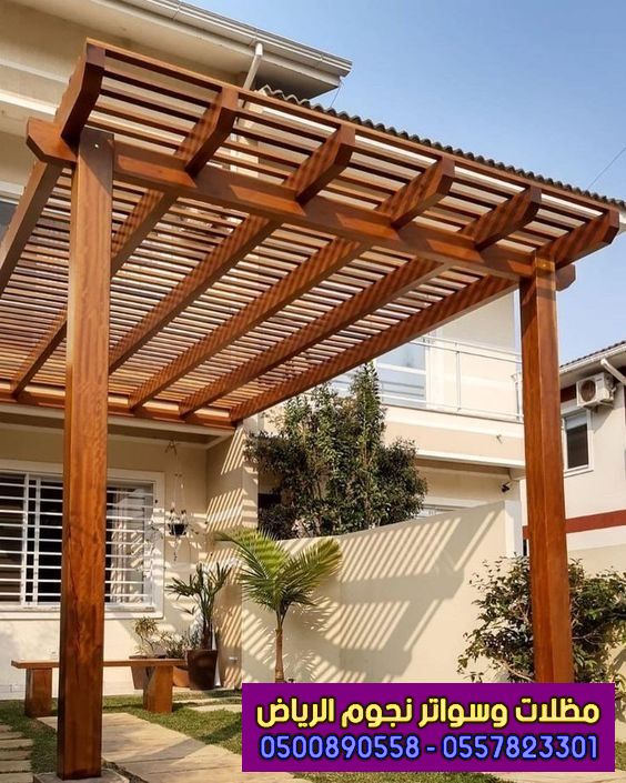 - مظلات الخشب: تتميز بالجمالية الطبيعية للخشب وتوفر ظلًا مريحًا. يمكن تصميمها بأشكال وأحجام مختلفة وفقًا للمساحة المتاحة والتفضيلات الشخصية.